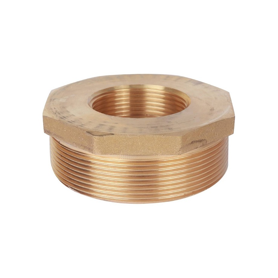 Латунный резьбовой фитинг представляет собой гайку или втулку, имеющую наружную резьбу для соединения большего диаметра и внутреннюю резьбу для соединения меньшего диаметра. Основное назначение — обеспечить переход от одного диаметра резьбы к другому.