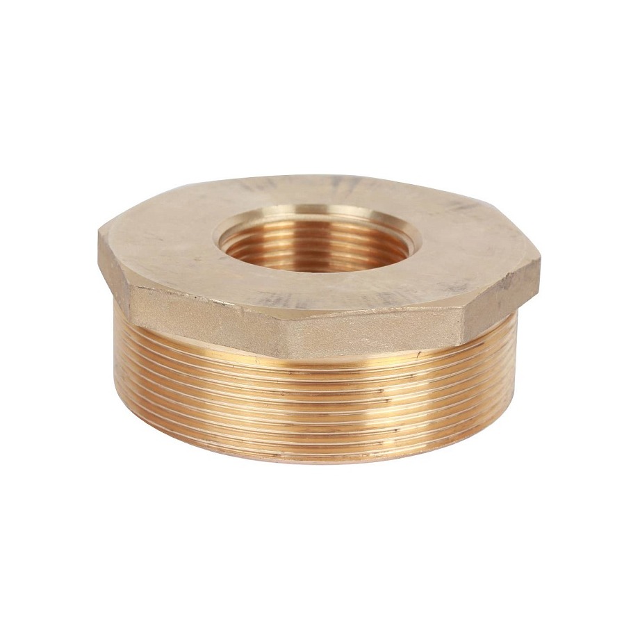 Латунный резьбовой фитинг представляет собой гайку или втулку, имеющую наружную резьбу для соединения большего диаметра и внутреннюю резьбу для соединения меньшего диаметра. Основное назначение — обеспечить переход от одного диаметра резьбы к другому.