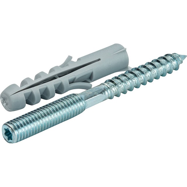 В комплект поставки входит шпилька, шуруп и пластиковый дюбель.