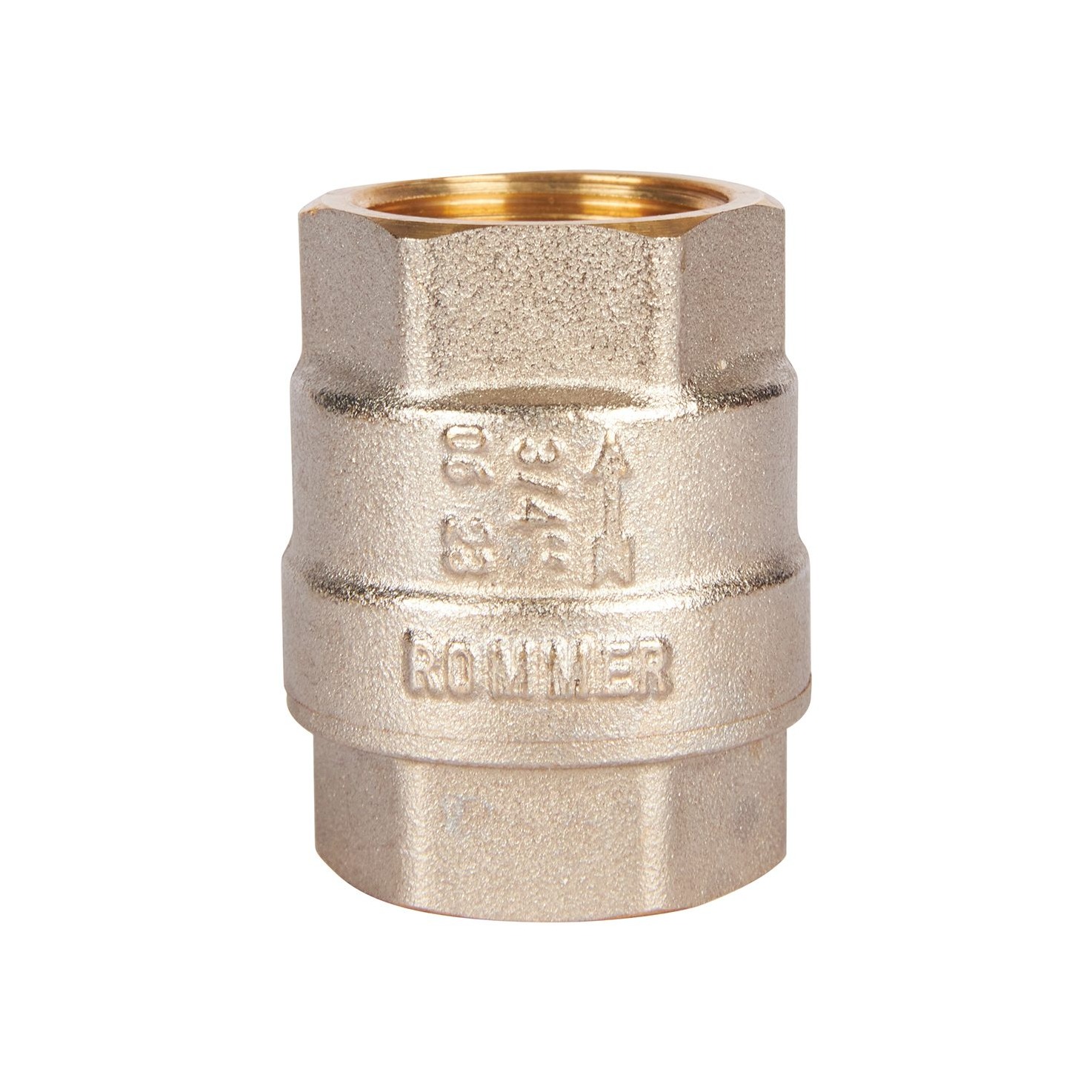 Обратный пружинный муфтовый клапан с металлическим седлом ROMMER предназначен для предотвращения обратного потока жидкости или газов в трубопроводных системах различного назначения. В качестве транспортируемой среды могут использоваться сжатый воздух и жидкости не агрессивные к материалам клапана.