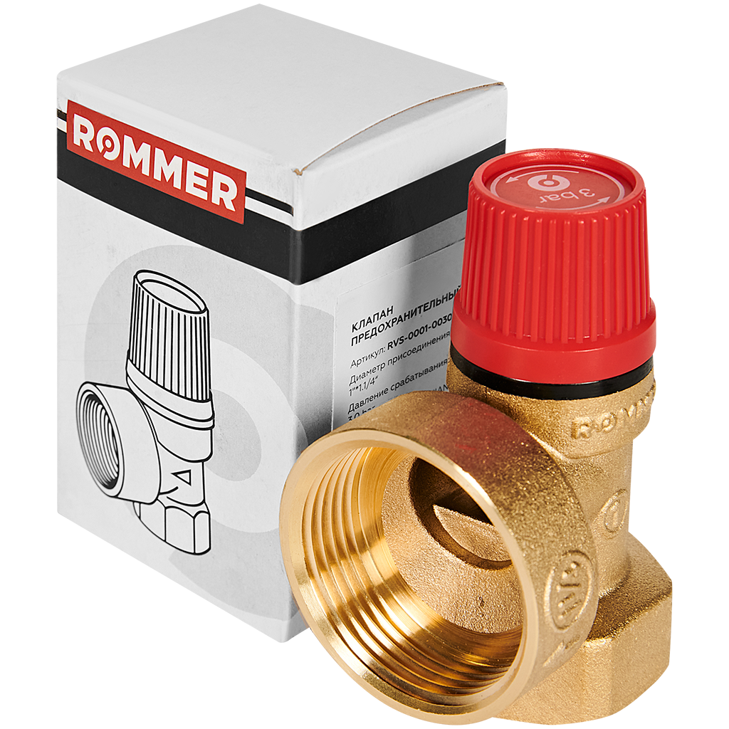 Клапан предохранительный ROMMER - 1", сброс 1 1/4" (ВР/ВР, Tmax 110°C, 3 бар)