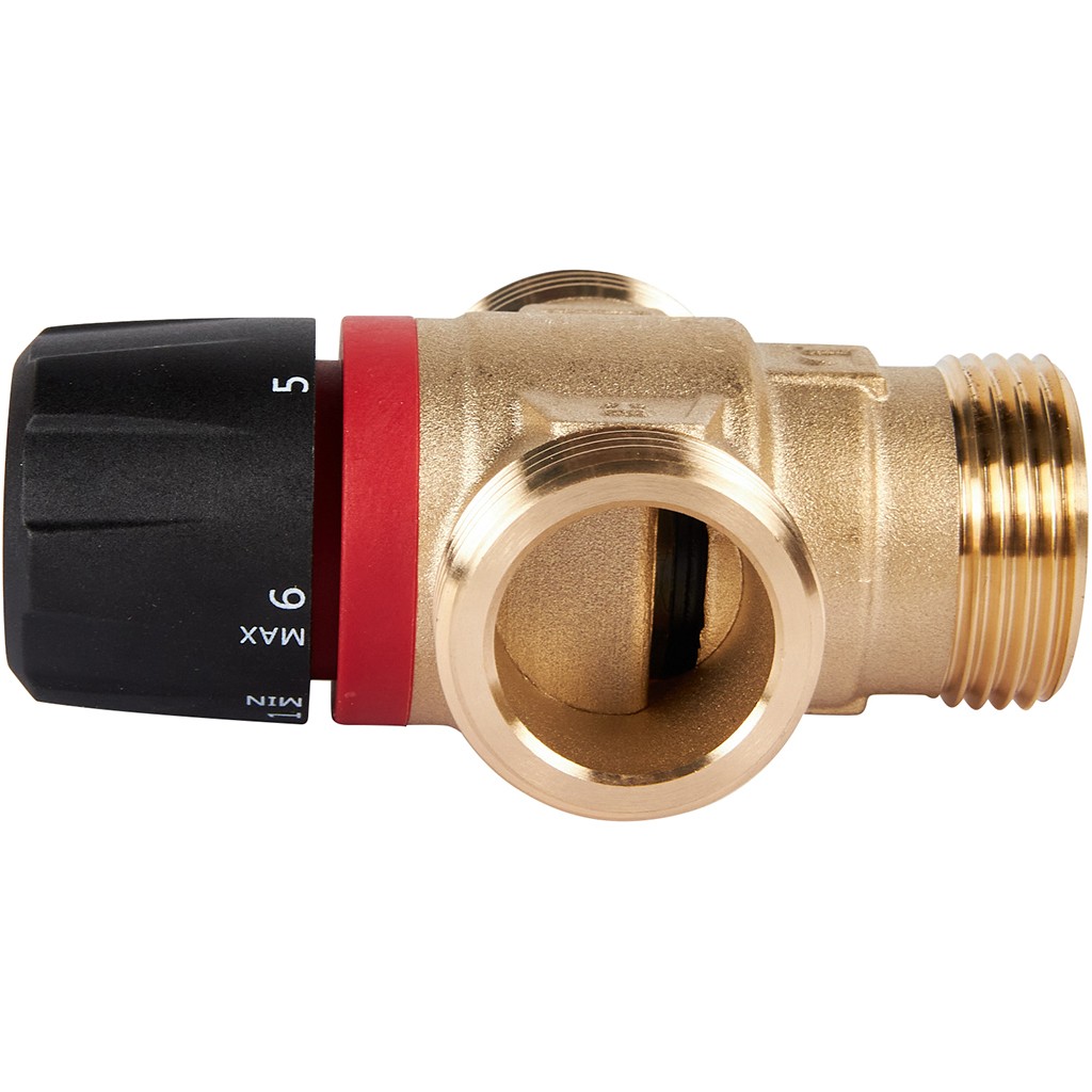 Клапан имеет два входных штуцера для подвода смешиваемых сред и один выходной. В клапан встроен перенастраиваемый термостатический элемент, поддерживающий в зависимости от модификации клапана температуру теплоносителя в заданных диапазонах.