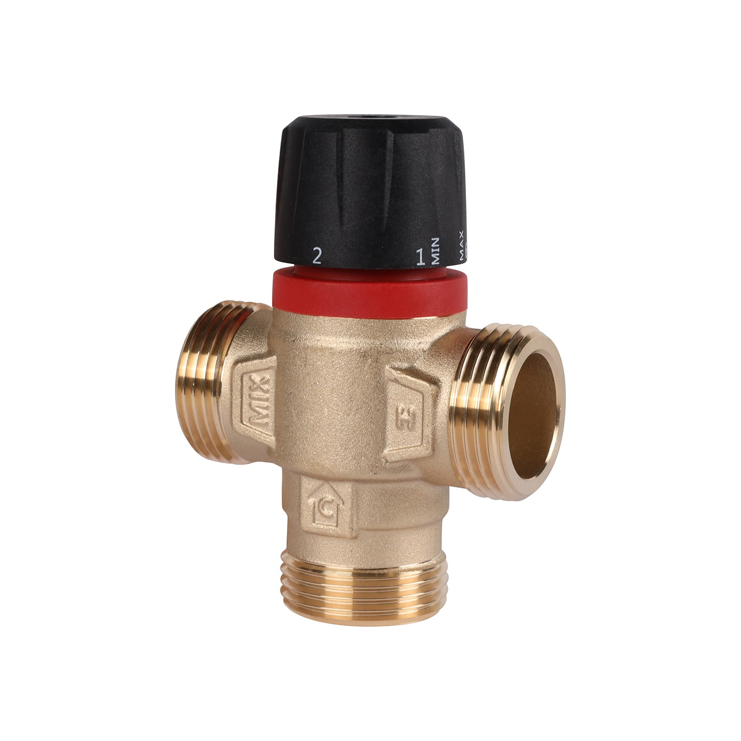 Клапан имеет два входных штуцера для подвода смешиваемых сред и один выходной. В клапан встроен перенастраиваемый термостатический элемент, поддерживающий в зависимости от модификации клапана температуру теплоносителя в заданных диапазонах