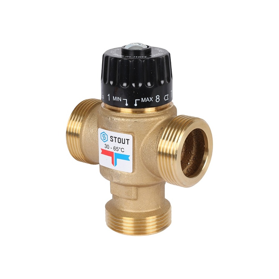 Термостатические смесительные клапаны STOUT – регуляторы температуры прямого действия, работающие без использования дополнительной энергии. Предназначены для контроля и поддержания заданной температуры в системах горячего водоснабжения, а также отопления с постоянной температурой теплоносителя, например, типа «теплый пол».