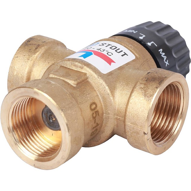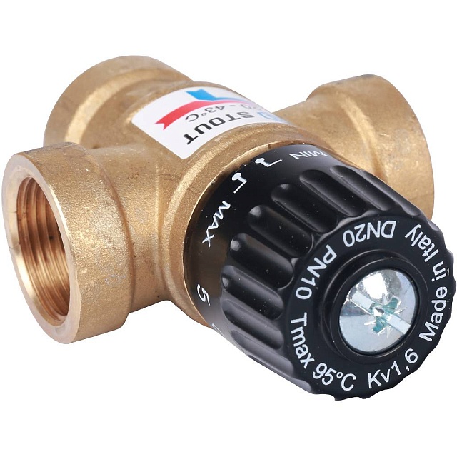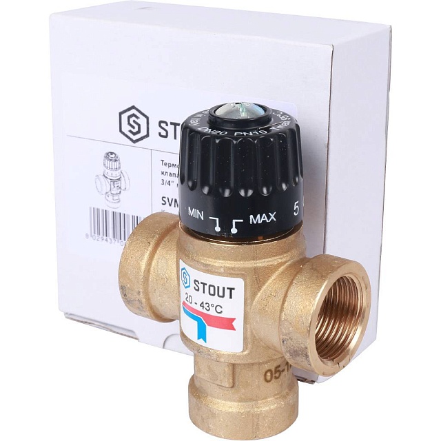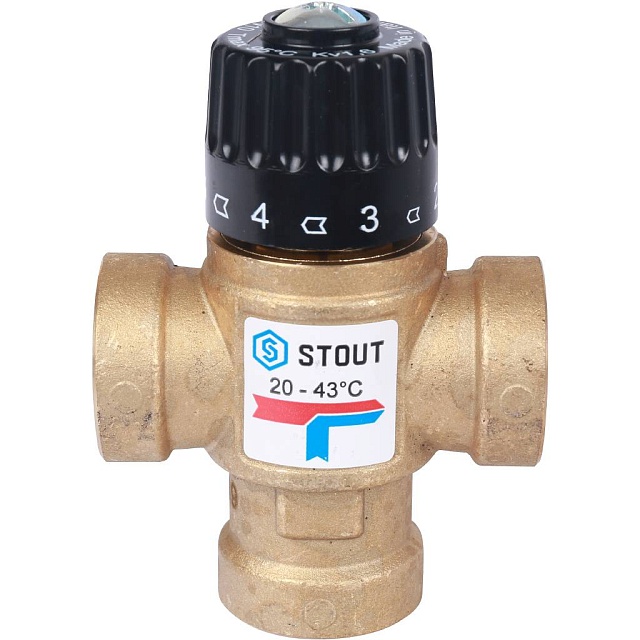 Клапан термостатический смесительный STOUT - 3/4" (ВР, 20-43°C, Kvs 1.6, L-образное смешивание)
