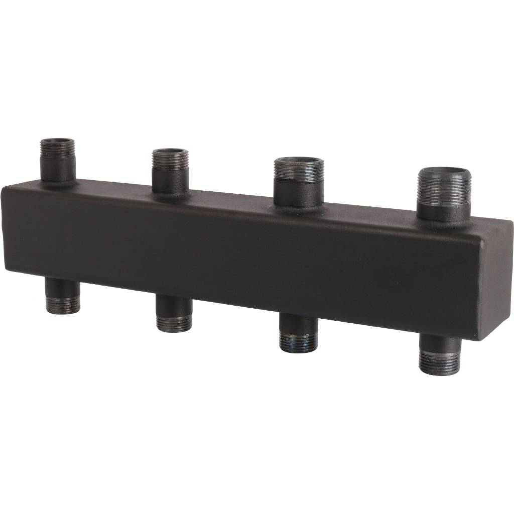Коллектор котельной разводки ROMMER - 1"1/4 НР на 2+1 контур 1" НР (до 80кВт, черная сталь)