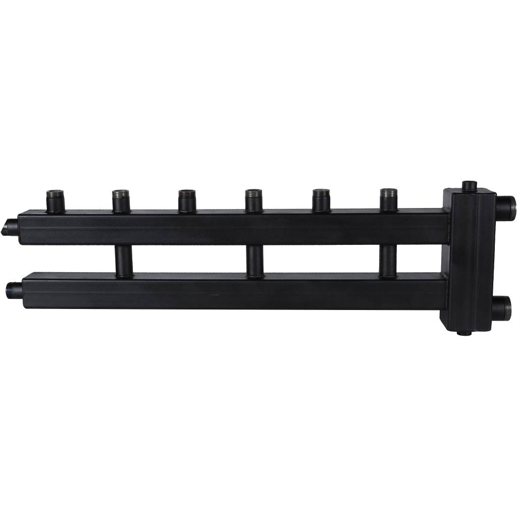 Настенный коллектор отопления с гидроразделителем с разделением подающей и обратной линий.