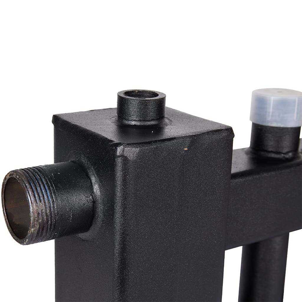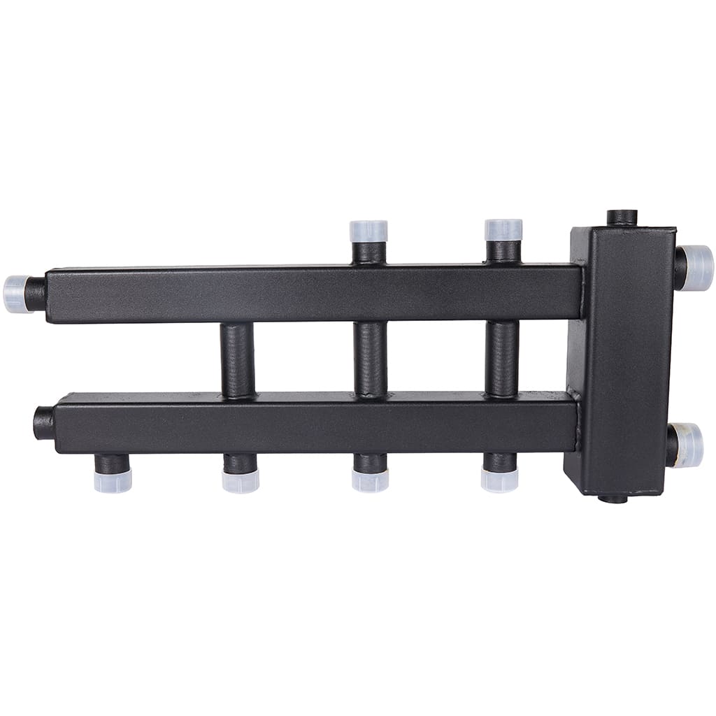 Настенный распределительный коллектор с гидроразделителем с разделением подающей и обратной линий.