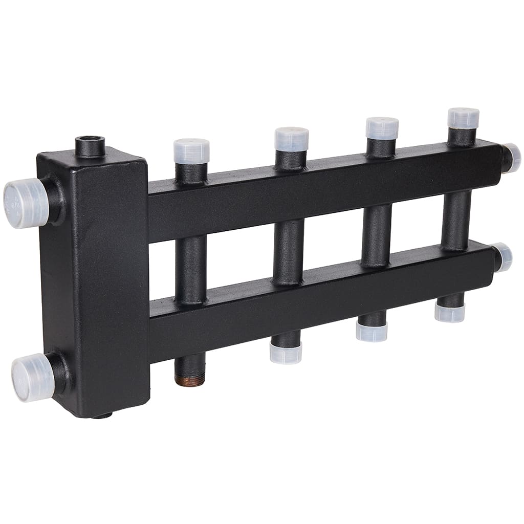 Настенный коллектор отопления с гидроразделителем с разделением подающей и обратной линий в компактном исполнении.