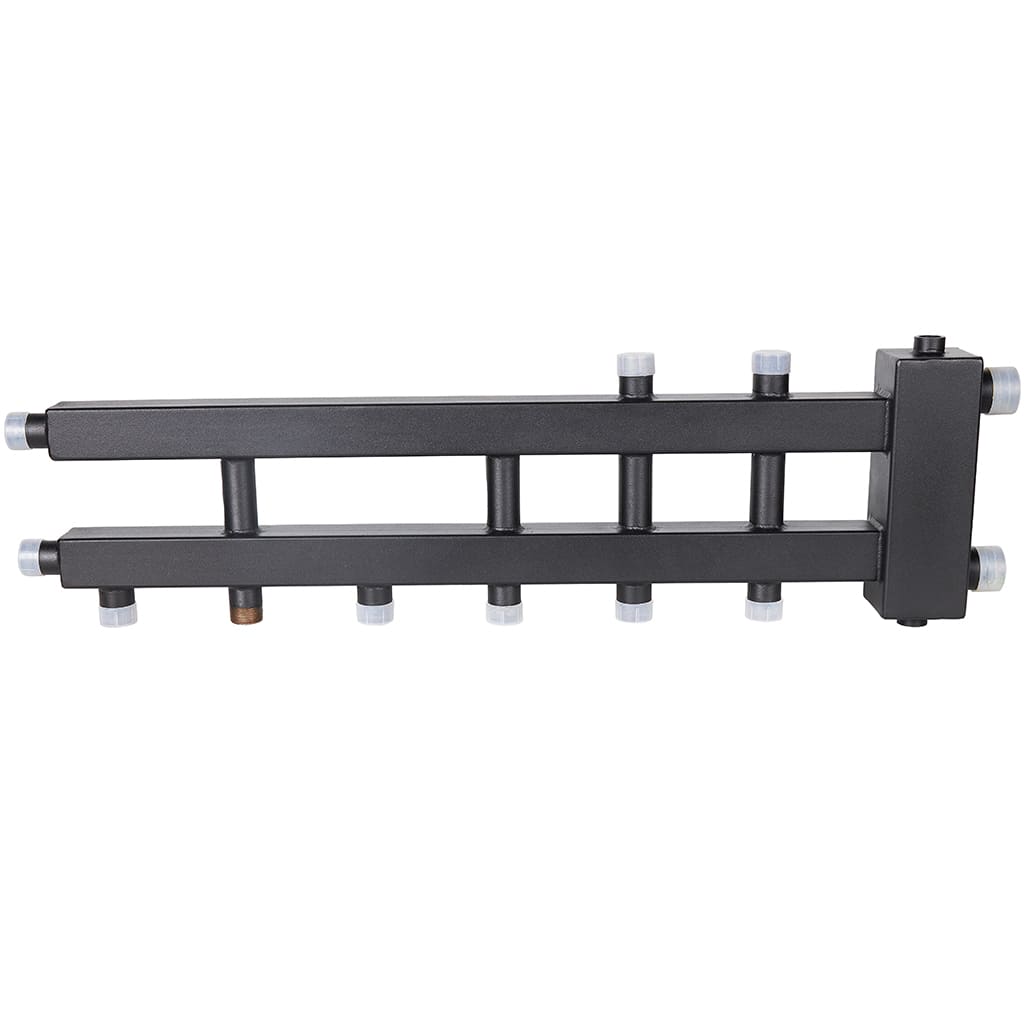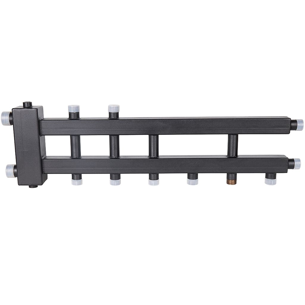 Настенный коллектор отопления с гидроразделителем с разделением подающей и обратной линий в компактном исполнении.