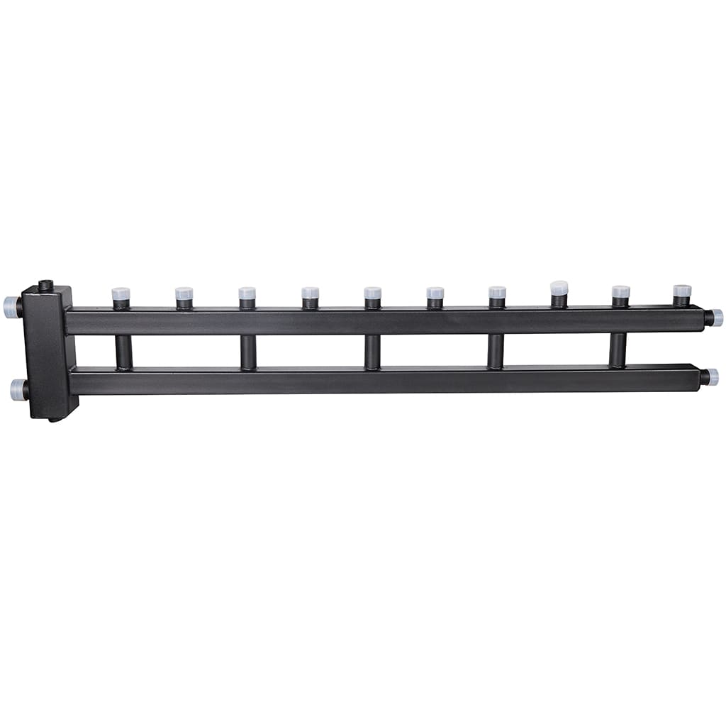 Настенный коллектор отопления с гидроразделителем с разделением подающей и обратной линий в компактном исполнении.