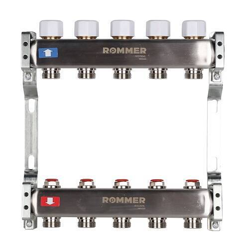 Коллекторная группа для радиаторного отопления ROMMER RMS3200 - 1" на 5 контуров 3/4"EK