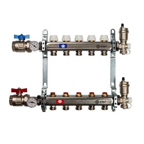 Полностью укомплектованный коллекторный блок с термостатическими и терморегулирующими вентилями.