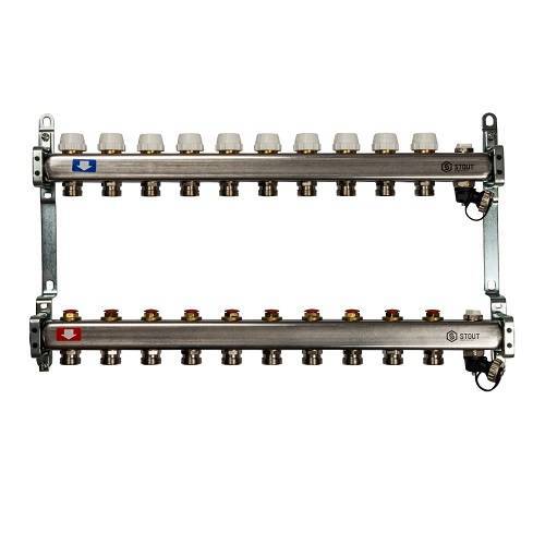 Коллектор из нержавеющей стали без расходомеров, с клапаном выпуска воздуха и сливом.