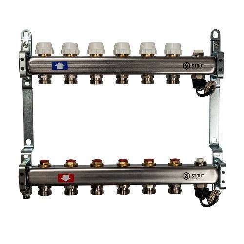 Коллектор из нержавеющей стали без расходомеров, с клапаном выпуска воздуха и сливом.