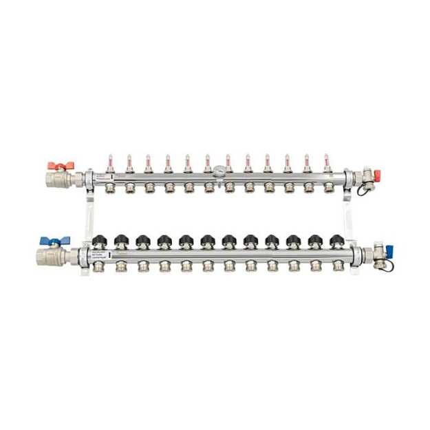 Коллекторная группа для теплого пола РЕХАУ HKV-D - 1" на 12 контура 3/4"EK (нерж. сталь)