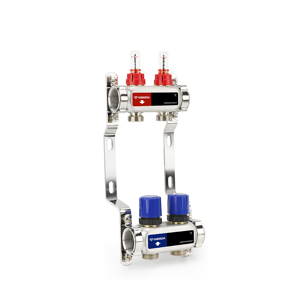 Коллекторная группа из нержавеющей стали с расходомерами Varmega серии VM151 предназначена для распределения и регулирования потоков теплоносителя в низкотемпературных системах отопления (напольное отопление). В качестве «потребителя» выступает прибор отопления, контур или петля «теплого пола», а также, отдельные части или ветви системы.