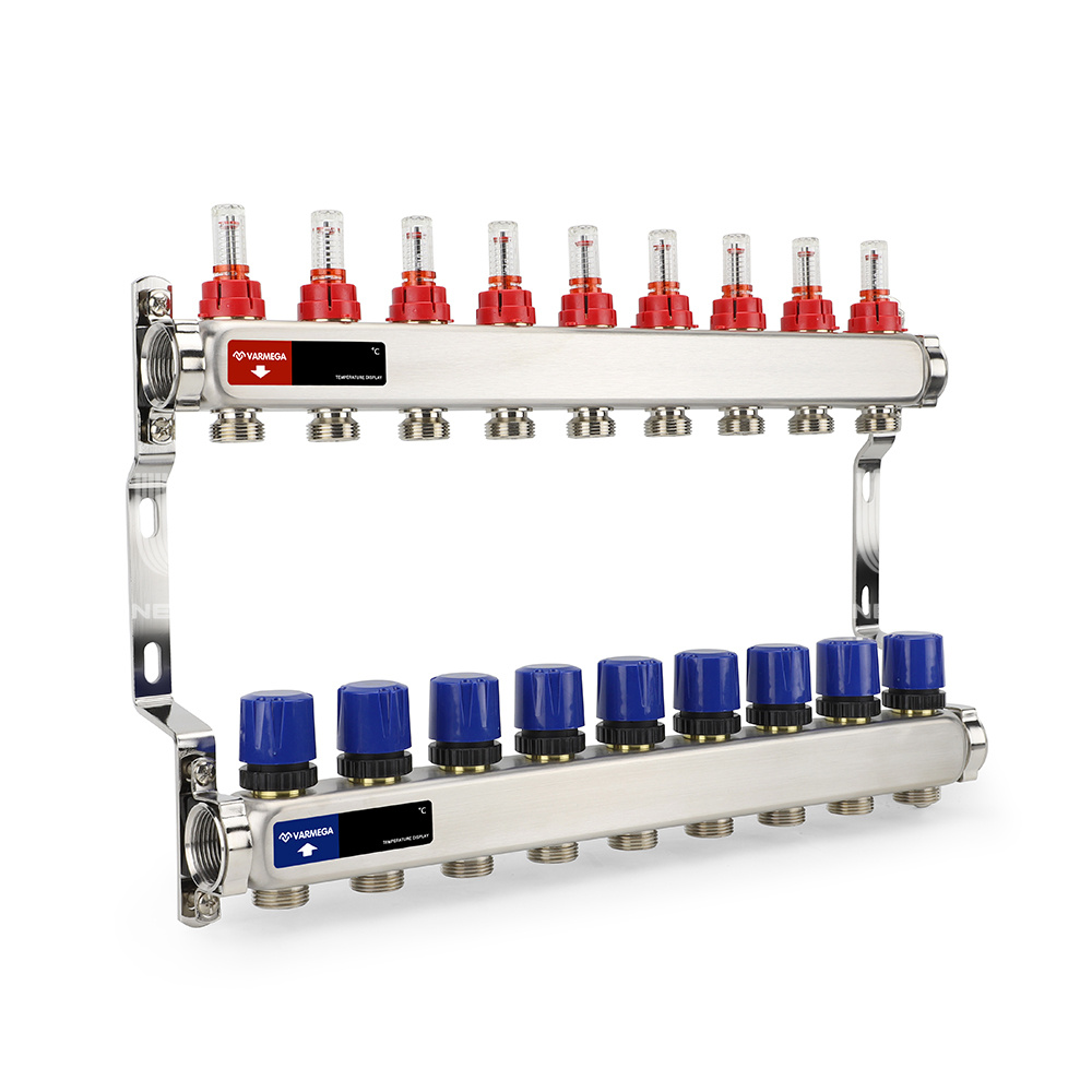 Коллекторная группа для теплого пола Varmega - 1" на 9 контуров 3/4" EK (нержавеющая сталь)