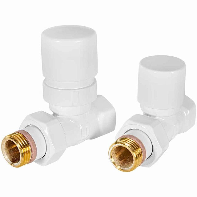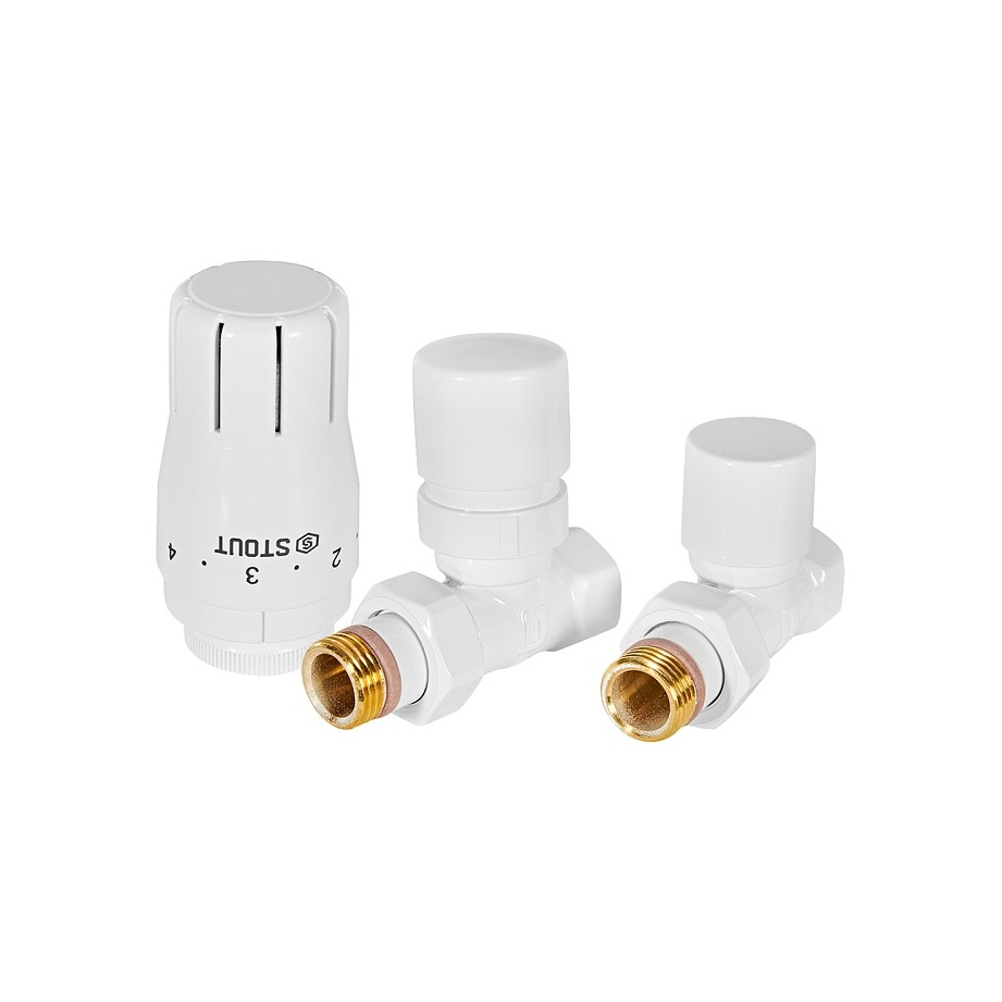 Комплект клапанов термостатических прямой STOUT Design - 1/2" (ВР/НР-американка, PN10, Tmax 120°C, EPTF уплотнение, цвет белый)