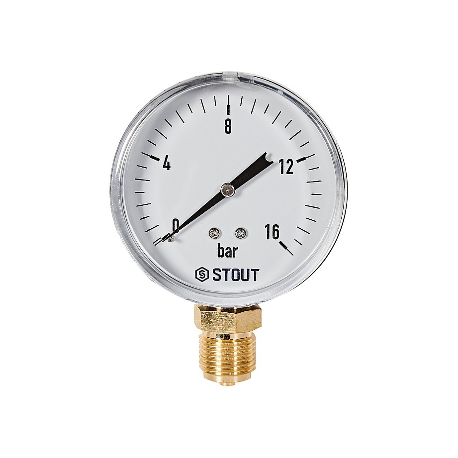 Манометр радиальный STOUT - 1/2" (D80 мм, шкала 0-16 бар)
