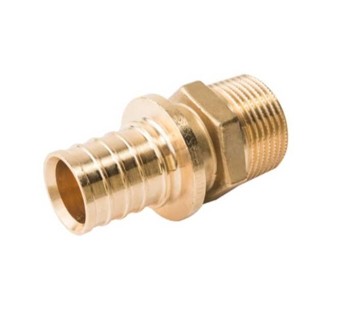 Переходник на наружную резьбу аксиального типа для трубы из сшитого полиэтилена. Для монтажа фитинга с трубой необходимо дополнительно приобрести 1 надвижную гильзу соответствующего диаметра.
