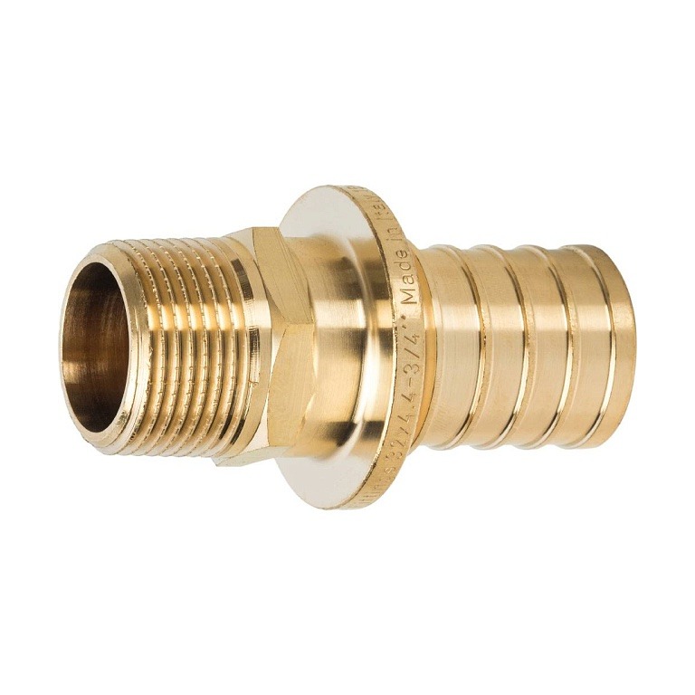Переходник на наружную резьбу аксиального типа для трубы из сшитого полиэтилена. Для монтажа фитинга с трубой необходимо дополнительно приобрести 1 надвижную гильзу соответствующего диаметра.