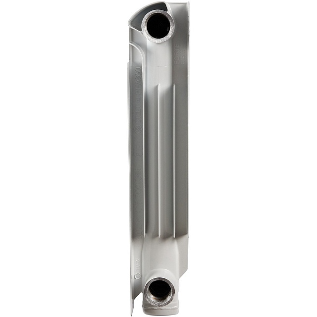 Каждая секция представляет собой единый монолит из двух коллекторов и связывающего их оребрения, внутри которого проходит вертикальный канал овального сечения. Особая форма оребрения и канала обеспечивают высокие теплотехнические показатели радиатора и низкое гидравлическое сопротивление