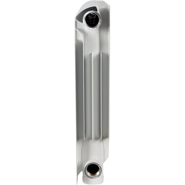 Каждая секция представляет собой единый монолит из двух коллекторов и связывающего их оребрения, внутри которого проходит вертикальный канал овального сечения. Особая форма оребрения и канала обеспечивают высокие теплотехнические показатели радиатора и низкое гидравлическое сопротивление