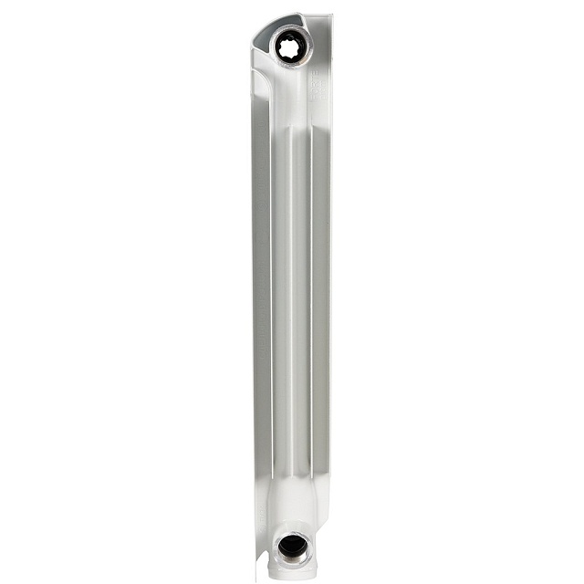 Каждая секция представляет собой единый монолит из двух коллекторов и связывающего их оребрения, внутри которого проходит вертикальный канал овального сечения. Особая форма оребрения и канала обеспечивают высокие теплотехнические показатели радиатора и низкое гидравлическое сопротивление