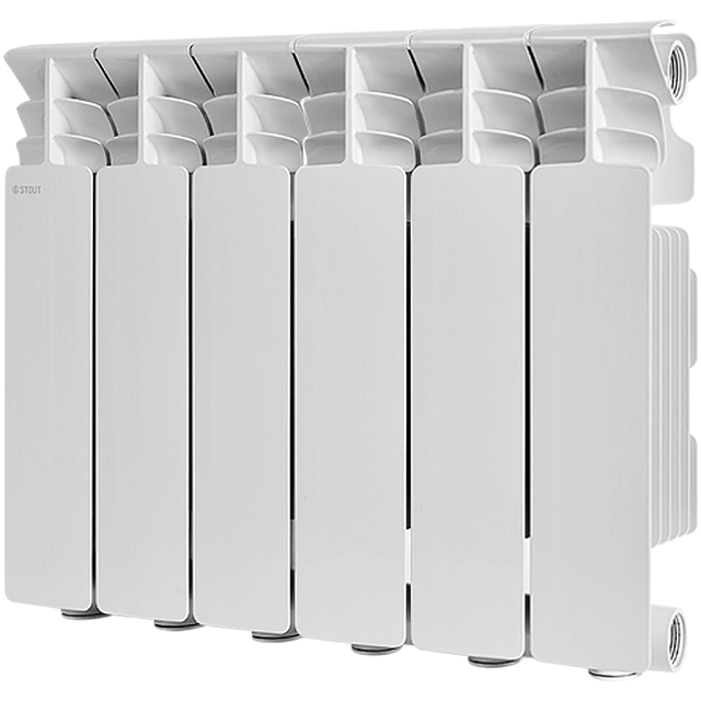 Радиатор алюминиевый STOUT Gamma 350 - 6 секций (подключение боковое, цвет белый)