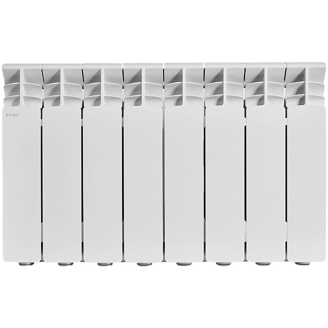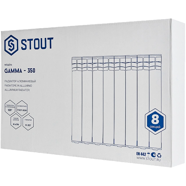 Радиатор алюминиевый STOUT Gamma 350 - 8 секций (подключение боковое, цвет белый)