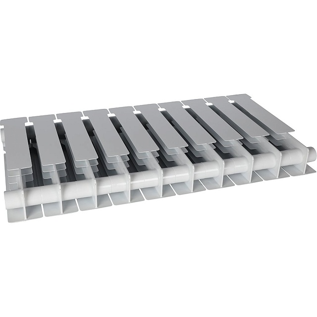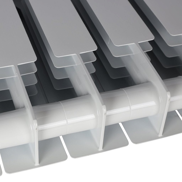 Биметаллический радиатор для систем водяного отопления высокого давления. Изготовлен в России, на современном европейском оборудовании. Повышенная надежность сборки радиатора обеспечивается за счет особой геометрии межсекционных соединений и параметров силиконовых прокладок.