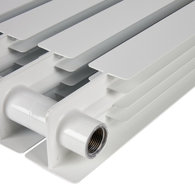 Биметаллический радиатор для систем водяного отопления высокого давления. Изготовлен в России, на современном европейском оборудовании. Повышенная надежность сборки радиатора обеспечивается за счет особой геометрии межсекционных соединений и параметров силиконовых прокладок.