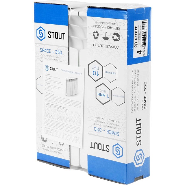 Радиатор биметаллический STOUT Space 350 - 4 секции (подключение боковое, цвет белый)