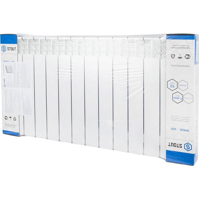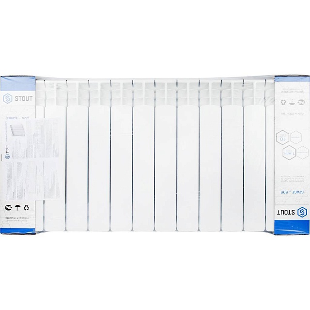 Радиатор биметаллический STOUT Space 500 - 14 секций (подключение боковое, цвет белый)