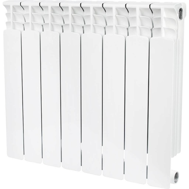 Биметаллический радиатор для систем водяного отопления высокого давления. Изготовлен в России, на современном европейском оборудовании. Повышенная надежность сборки радиатора обеспечивается за счет особой геометрии межсекционных соединений и параметров силиконовых прокладок.