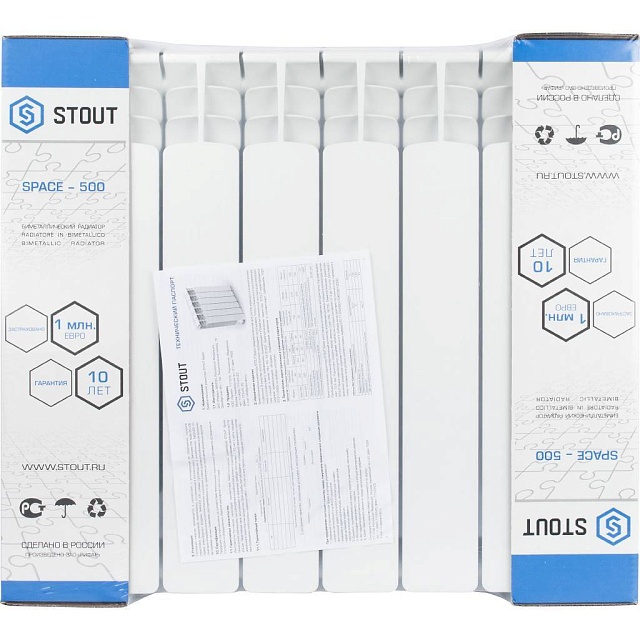 Радиатор биметаллический STOUT Space 500 - 8 секций (подключение боковое, цвет белый)