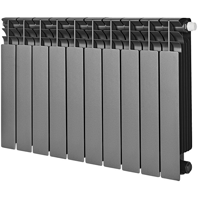 Радиатор биметаллический STOUT TITAN VENTIL 500 - 10 секций (подключение нижнее правое, цвет графит RAL 7024)