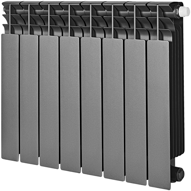 Радиатор биметаллический STOUT TITAN VENTIL 500 - 8 секций (подключение нижнее правое, цвет графит RAL 7024)