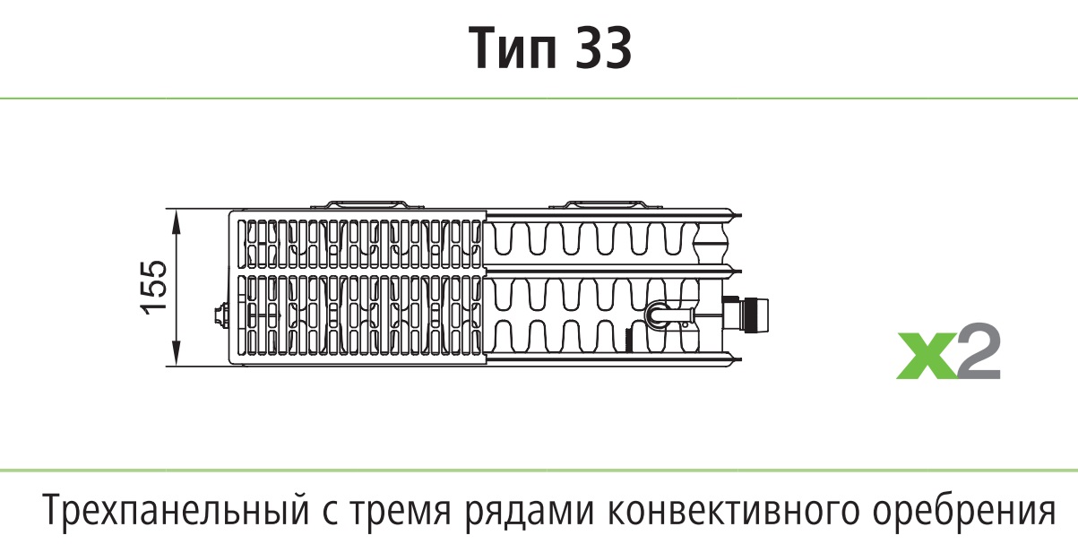 Радиатор имеет встроенный развод и вентильный терморегулятор, и рассчитан на нижнее подключение с наружной резьбой 3/4"