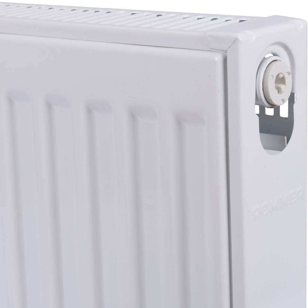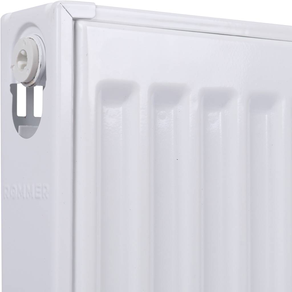 Стальной панельный радиатор ROMMER изготавливается из высококачественной холоднокатаной стали марки DC01. П-образное оребрение толщиной 0,4 мм приварено точечной сваркой непосредственно к вертикальным каналам, предназначенным для прохода теплоносителя. Подсоединения имеет внутреннюю резьбу 1/2". Радиатор покрыт белой эмалью (RAL 9016), отопительный прибор с таким покрытием не предназначен для установки в помещениях с излишне агрессивной или влажной средой (например: бассейны, автомойки, прачечные, химчистки). При этом его можно использовать в кухнях, ванных комнатах, туалетах в местах, находящихся вне зоны попадания водяных брызг.