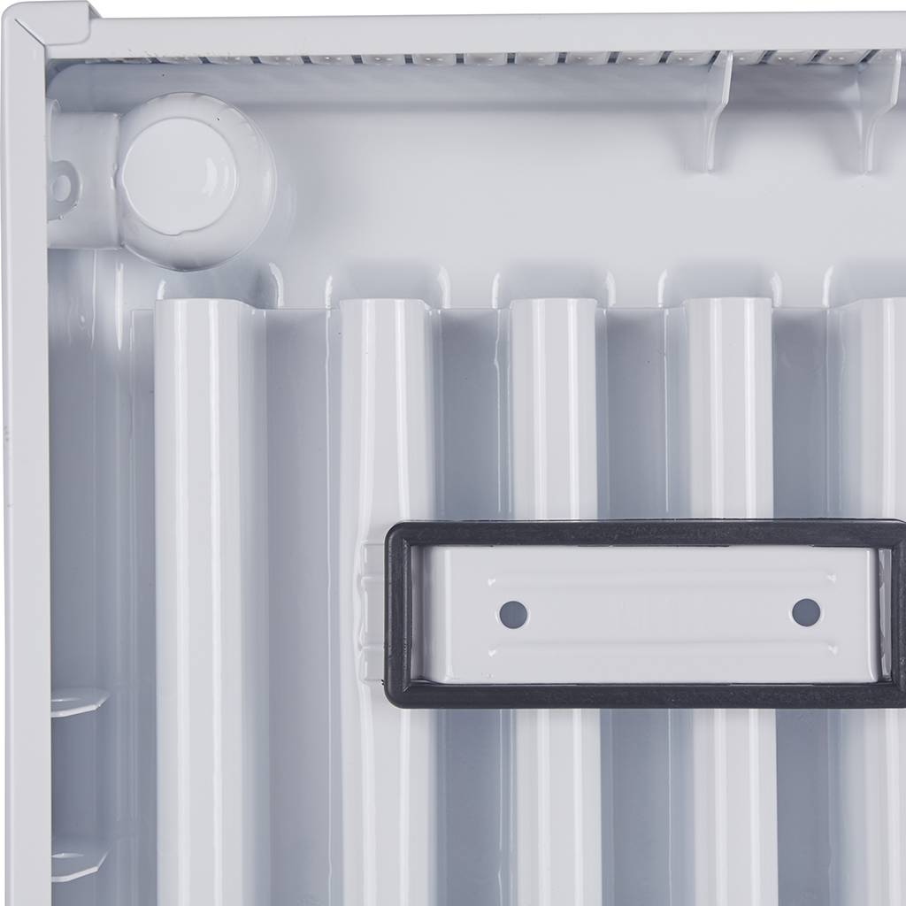 Стальной панельный радиатор ROMMER изготавливается из высококачественной холоднокатаной стали марки DC01. П-образное оребрение толщиной 0,4 мм приварено точечной сваркой непосредственно к вертикальным каналам, предназначенным для прохода теплоносителя. Подсоединения имеет внутреннюю резьбу 1/2". Радиатор покрыт белой эмалью (RAL 9016), отопительный прибор с таким покрытием не предназначен для установки в помещениях с излишне агрессивной или влажной средой (например: бассейны, автомойки, прачечные, химчистки). При этом его можно использовать в кухнях, ванных комнатах, туалетах в местах, находящихся вне зоны попадания водяных брызг.