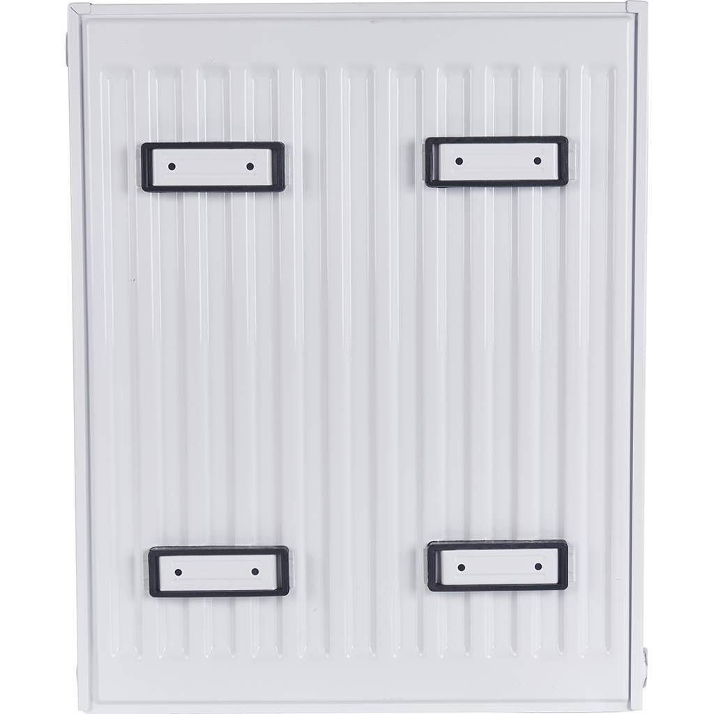 Стальной панельный радиатор ROMMER изготавливается из высококачественной холоднокатаной стали марки DC01. П-образное оребрение толщиной 0,4 мм приварено точечной сваркой непосредственно к вертикальным каналам, предназначенным для прохода теплоносителя. Подсоединения имеет внутреннюю резьбу 1/2". Радиатор покрыт белой эмалью (RAL 9016), отопительный прибор с таким покрытием не предназначен для установки в помещениях с излишне агрессивной или влажной средой (например: бассейны, автомойки, прачечные, химчистки). При этом его можно использовать в кухнях, ванных комнатах, туалетах в местах, находящихся вне зоны попадания водяных брызг.