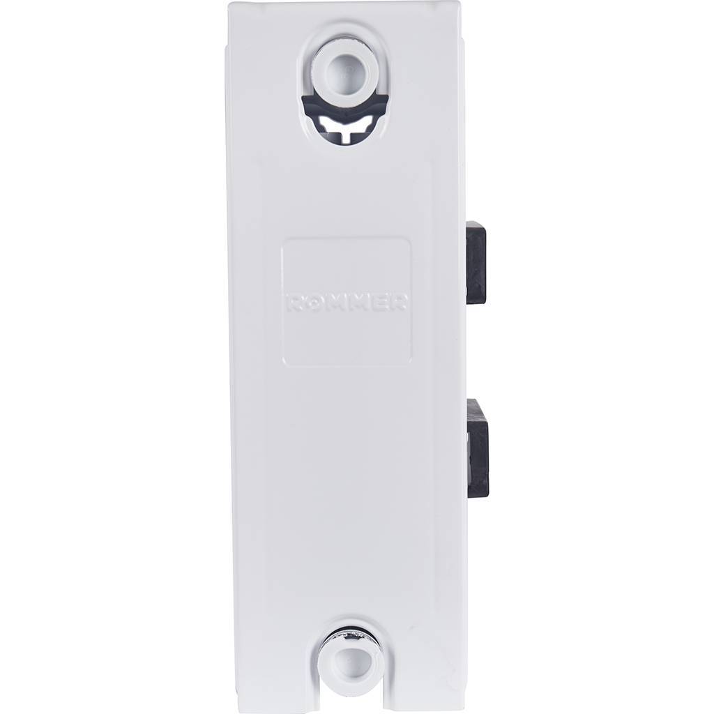 Стальной панельный радиатор ROMMER изготавливается из высококачественной холоднокатаной стали марки DC01. П-образное оребрение толщиной 0,4 мм приварено точечной сваркой непосредственно к вертикальным каналам, предназначенным для прохода теплоносителя. Подсоединения имеет внутреннюю резьбу 1/2". Радиатор покрыт белой эмалью (RAL 9016), отопительный прибор с таким покрытием не предназначен для установки в помещениях с излишне агрессивной или влажной средой (например: бассейны, автомойки, прачечные, химчистки). При этом его можно использовать в кухнях, ванных комнатах, туалетах в местах, находящихся вне зоны попадания водяных брызг.