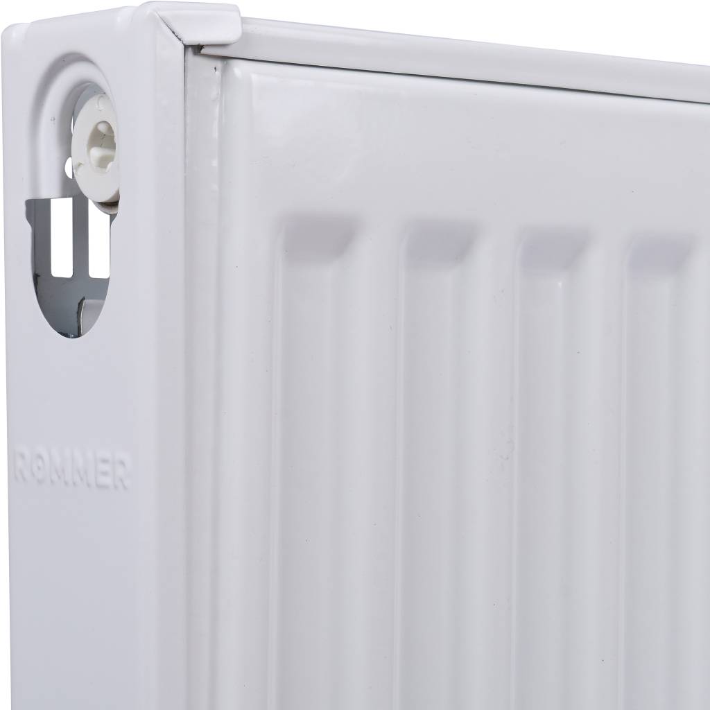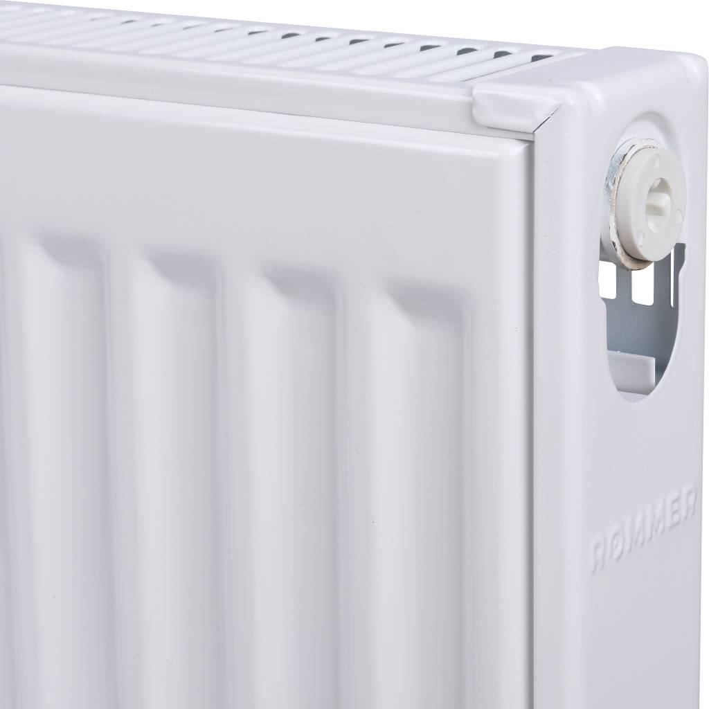 Стальной панельный радиатор ROMMER изготавливается из высококачественной холоднокатаной стали марки DC01. П-образное оребрение толщиной 0,4 мм приварено точечной сваркой непосредственно к вертикальным каналам, предназначенным для прохода теплоносителя. Подсоединения имеет внутреннюю резьбу 1/2". Радиатор покрыт белой эмалью (RAL 9016), отопительный прибор с таким покрытием не предназначен для установки в помещениях с излишне агрессивной или влажной средой (например: бассейны, автомойки, прачечные, химчистки). При этом его можно использовать в кухнях, ванных комнатах, туалетах в местах, находящихся вне зоны попадания водяных брызг.