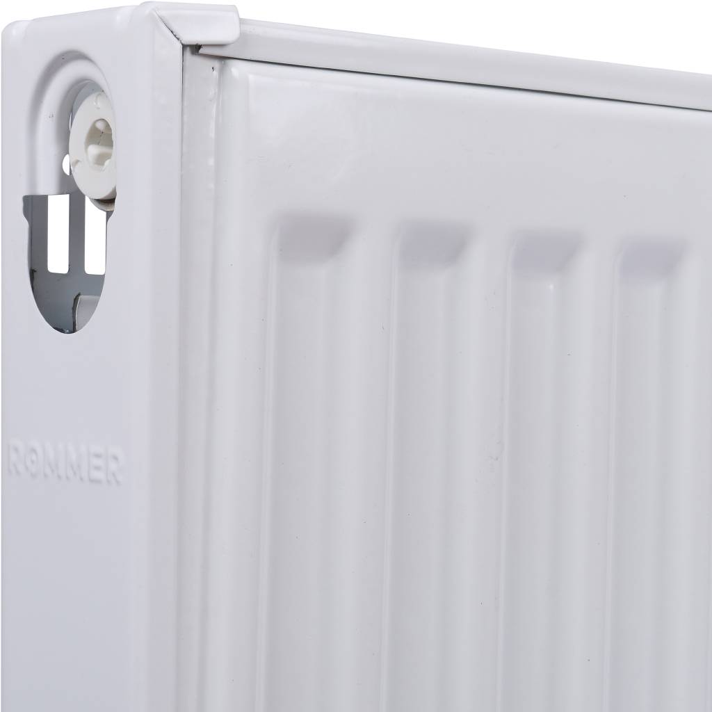 Стальной панельный радиатор ROMMER изготавливается из высококачественной холоднокатаной стали марки DC01. П-образное оребрение толщиной 0,4 мм приварено точечной сваркой непосредственно к вертикальным каналам, предназначенным для прохода теплоносителя. Подсоединения имеет внутреннюю резьбу 1/2". Радиатор покрыт белой эмалью (RAL 9016), отопительный прибор с таким покрытием не предназначен для установки в помещениях с излишне агрессивной или влажной средой (например: бассейны, автомойки, прачечные, химчистки). При этом его можно использовать в кухнях, ванных комнатах, туалетах в местах, находящихся вне зоны попадания водяных брызг.
