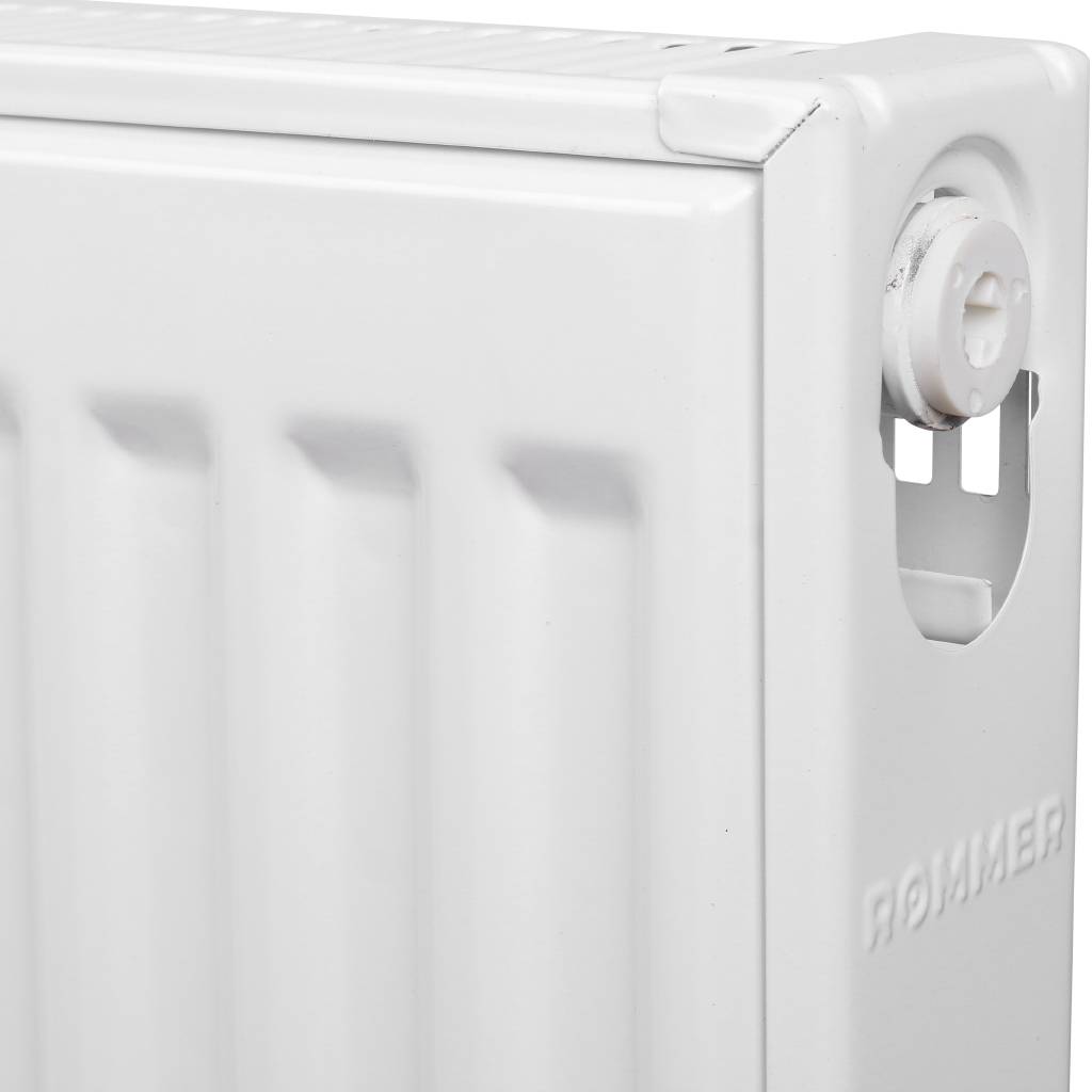 Стальной панельный радиатор ROMMER изготавливается из высококачественной холоднокатаной стали марки DC01. П-образное оребрение толщиной 0,4 мм приварено точечной сваркой непосредственно к вертикальным каналам, предназначенным для прохода теплоносителя. Подсоединения имеет внутреннюю резьбу 1/2". Радиатор покрыт белой эмалью (RAL 9016), отопительный прибор с таким покрытием не предназначен для установки в помещениях с излишне агрессивной или влажной средой (например: бассейны, автомойки, прачечные, химчистки). При этом его можно использовать в кухнях, ванных комнатах, туалетах в местах, находящихся вне зоны попадания водяных брызг.