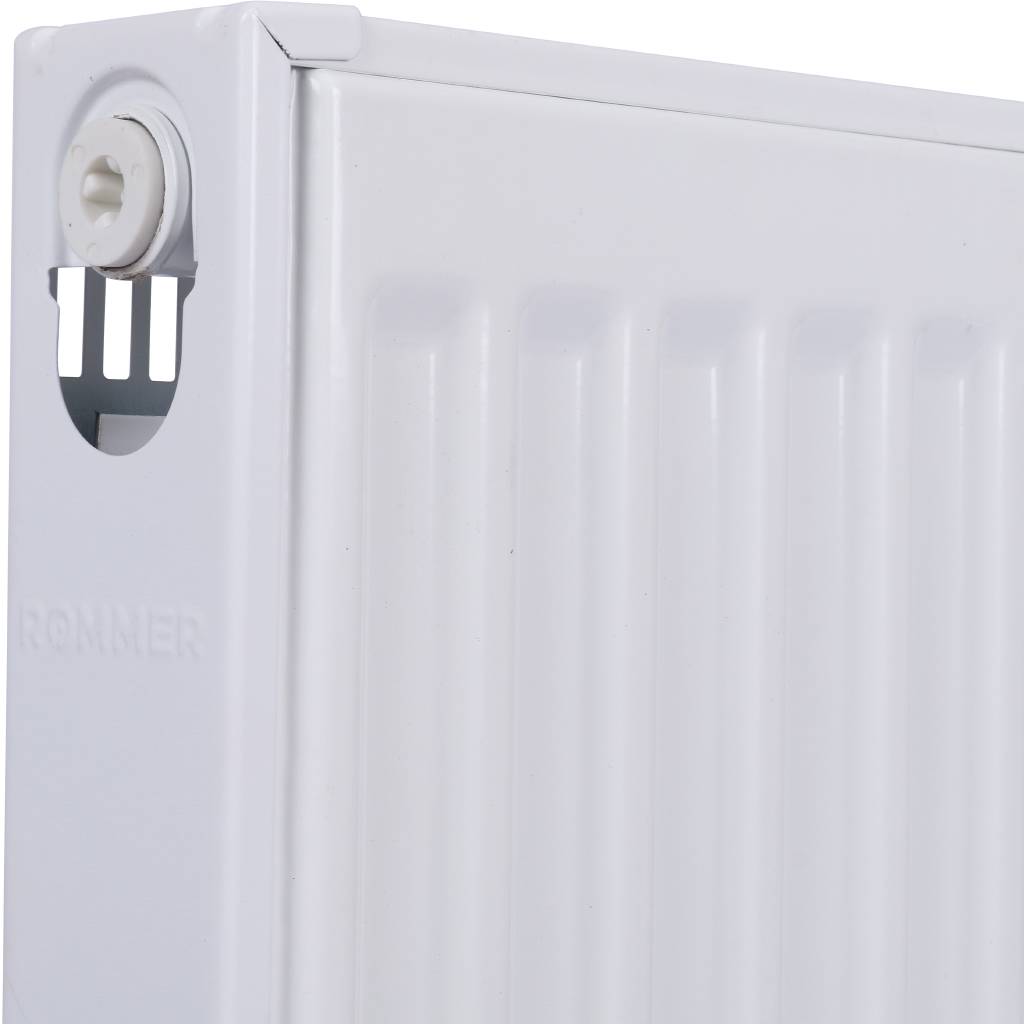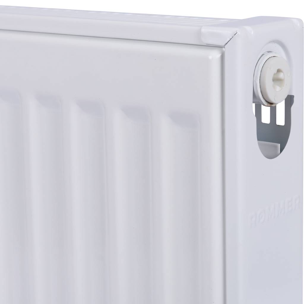 Стальной панельный радиатор ROMMER изготавливается из высококачественной холоднокатаной стали марки DC01. П-образное оребрение толщиной 0,4 мм приварено точечной сваркой непосредственно к вертикальным каналам, предназначенным для прохода теплоносителя. Подсоединения имеет внутреннюю резьбу 1/2". Радиатор покрыт белой эмалью (RAL 9016), отопительный прибор с таким покрытием не предназначен для установки в помещениях с излишне агрессивной или влажной средой (например: бассейны, автомойки, прачечные, химчистки). При этом его можно использовать в кухнях, ванных комнатах, туалетах в местах, находящихся вне зоны попадания водяных брызг.