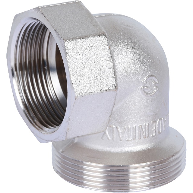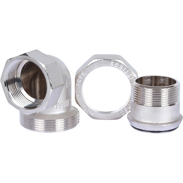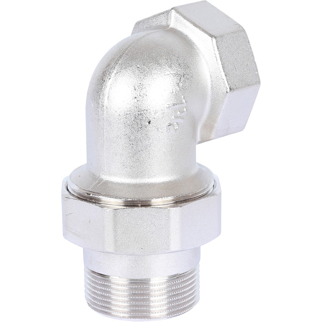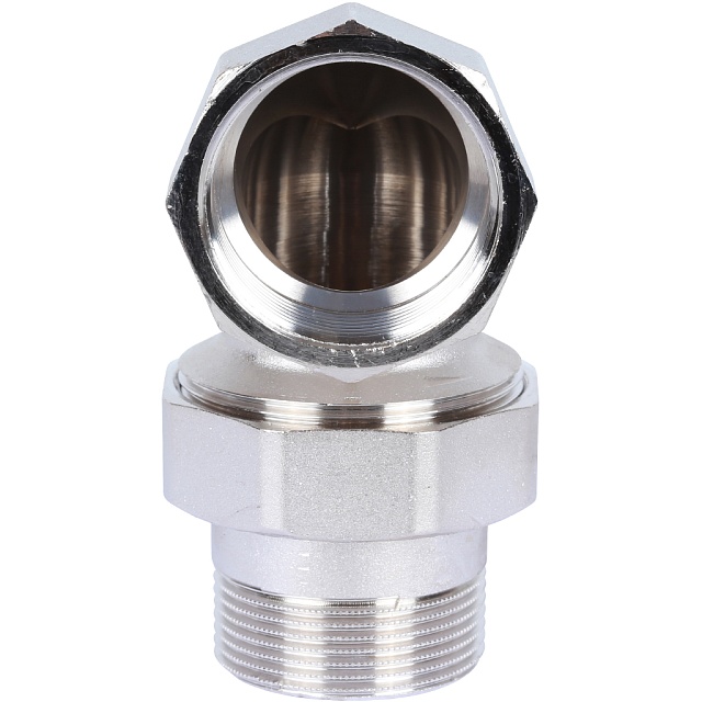 Разъемное угловое соединение "американка" ВН, уплотнение под гайкой o-ring кольцо, никелированное.