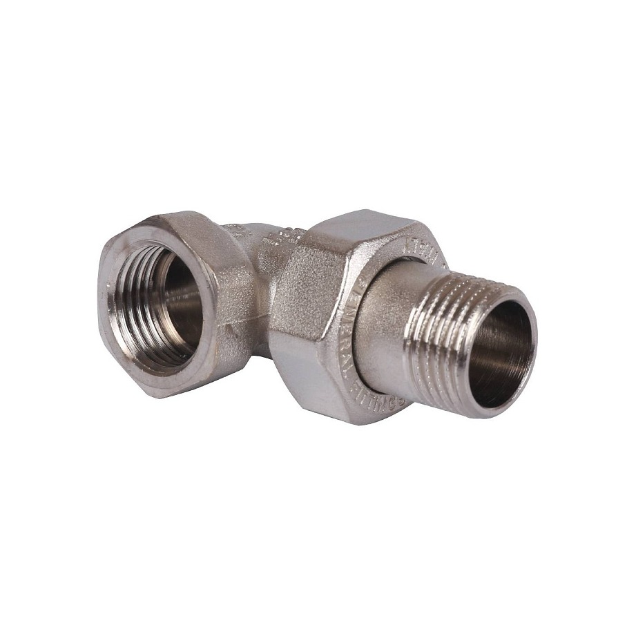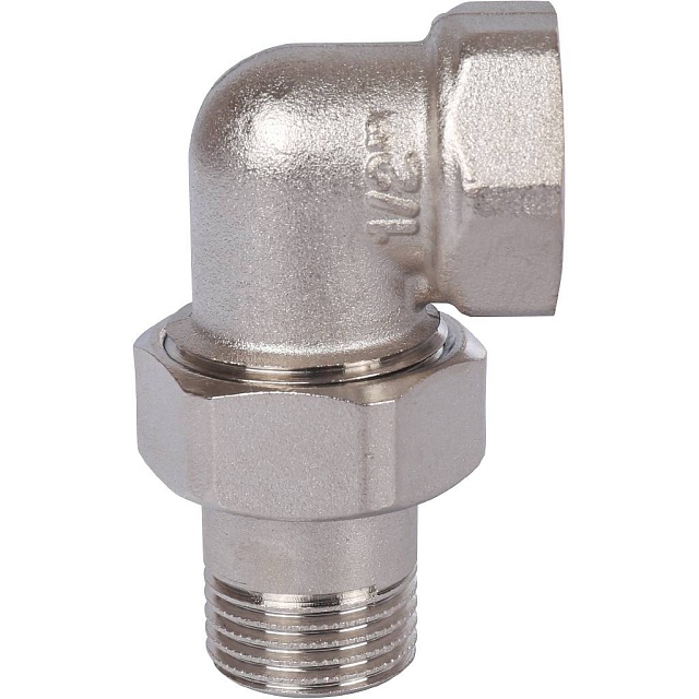 Разъемное угловое соединение "американка" ВН, уплотнение под гайкой o-ring кольцо, никелированное.